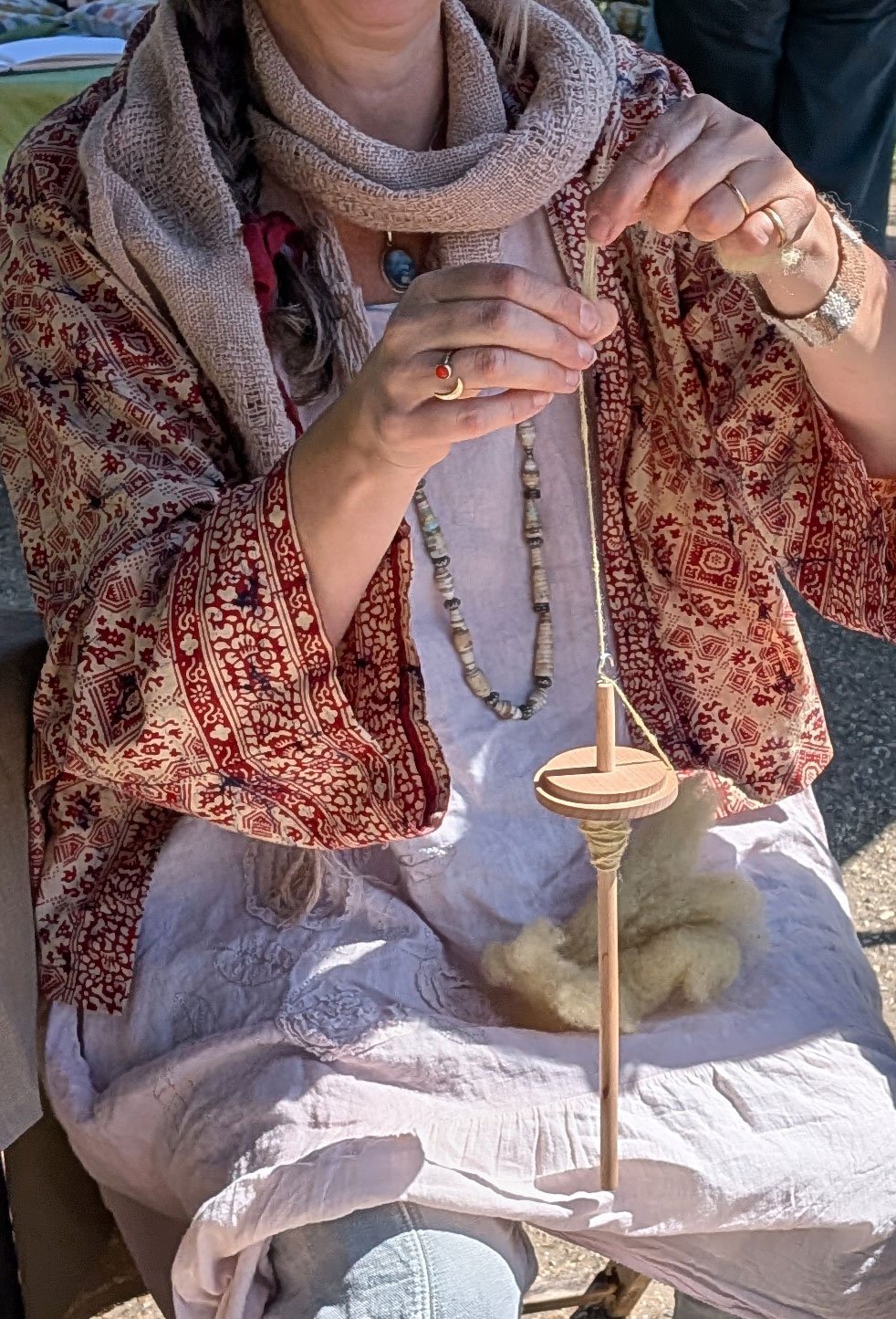 As my personal creative practice was evolving over the past 10 years I rediscovered the beautiful heritage crafts of cordage, spinning and weaving. First through natural dyes and then as I began to think about the actual fibres involved in creating fabrics. Following this thread back in time has deepened my understanding of materials and processes. I’ve grown flax for fibre on my allotment since 2019 and many dye plants. I have learned about flax processing with Justine’s Growing slow Textiles community and then locally with the Let’s Grow Flax community project, which I am proud to have set up in 2023 with weaver Brigitte Kaltenbaher. Spinning has become a mediation and as well as flax I continue to explore wool and other fibres. Bringing threads into woven form is the most recent aspect of the journey back to whole cloth. My practice is very much process led, aligned with natural materials and natures rhythms. I enjoy sharing the beauty of these slow crafts at workshops and events across Hampshire, Surrey and Sussex.
